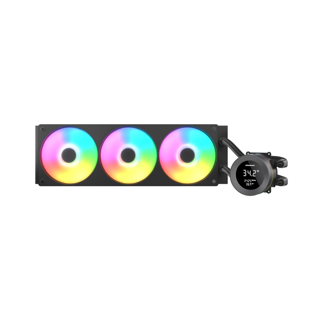 Кулер с водяным охлаждением, Cougar, Poseidon Vistek ARGB 360, Intel 1851/1700/1200/115х и AMD AM5/AM4, 3*120мм Unity ARGB, 700-2500 RPM±10%, 78,2CFM, 38 dB(A), Чёрный
